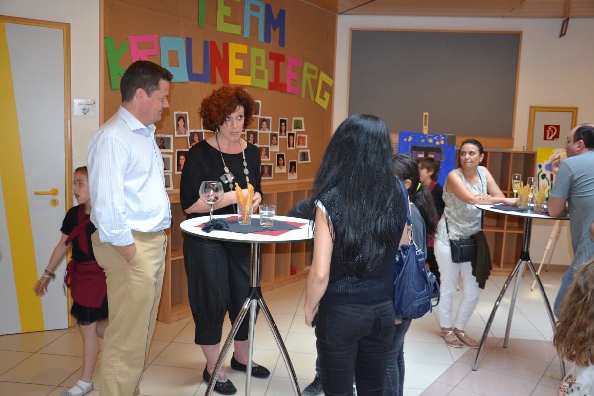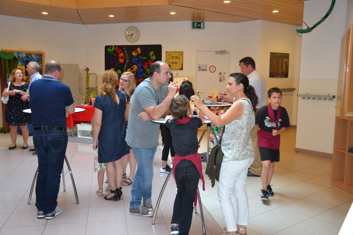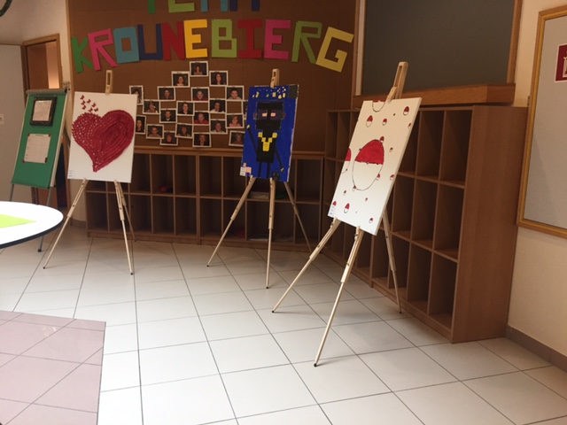 Am Cadre vun dëser Soirée hate mer och ee klenge Vernissage mat de Kanner hire Konschtwierker vun desem Schouljoer organiséiert.
