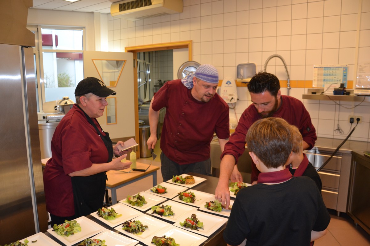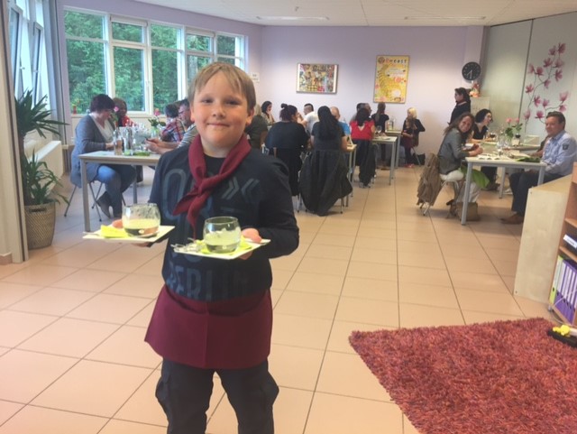 D’Kanner hunn zesumme mam Chef-Kach Marco Rota, d’Plate fir hir Eltere preparéiert an d’Dëscher schéin agedeckt. Natierlech waren et och si, déi hir Elteren dee ganzen Owend zervéiert hunn. Och dest Joer hu mer nees eng Garde fir d’Geschwësterkanner ugebueden déi net bei eis an der Maison relais sinn, sou datt d’Elteren e puer Stonnen an enger relaxer a gemütlecher Atmosphère hiren 3 Gang-Menu genéisse konnten.