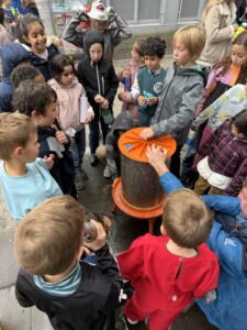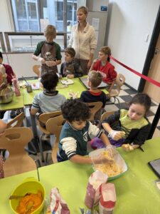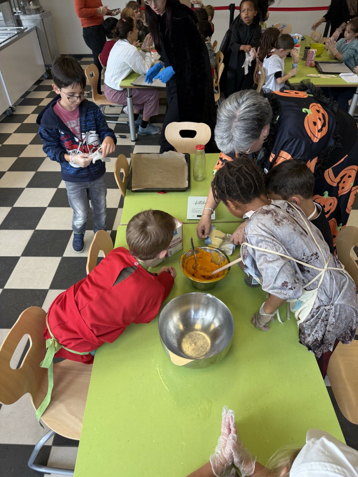 Atelier culinaire – les petits chefs ont préparé du jus de pommes maison et de délicieux biscuits à la citrouille, qui ont embaumé toute la salle.