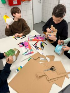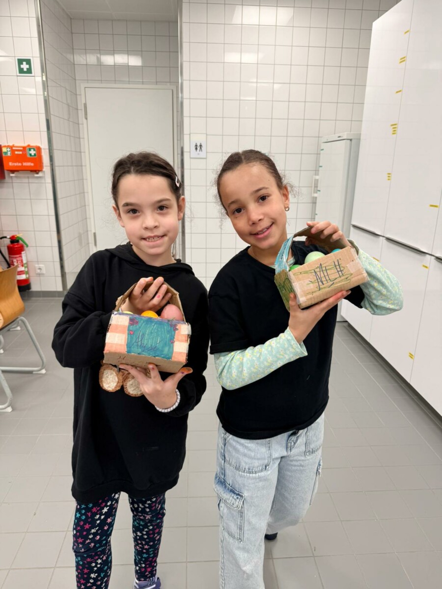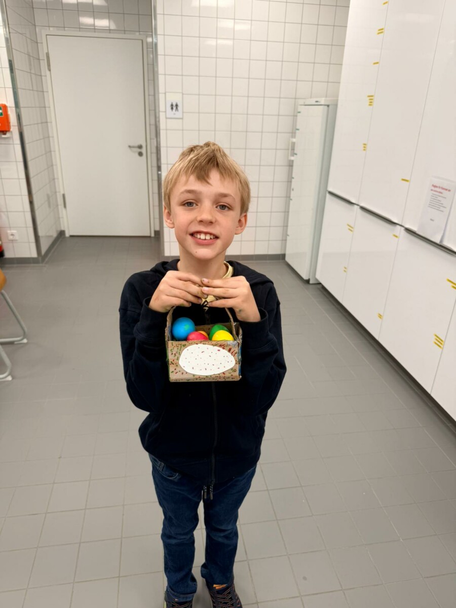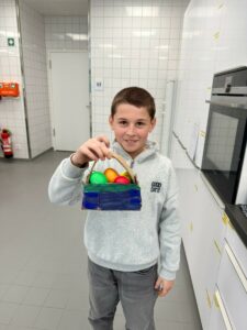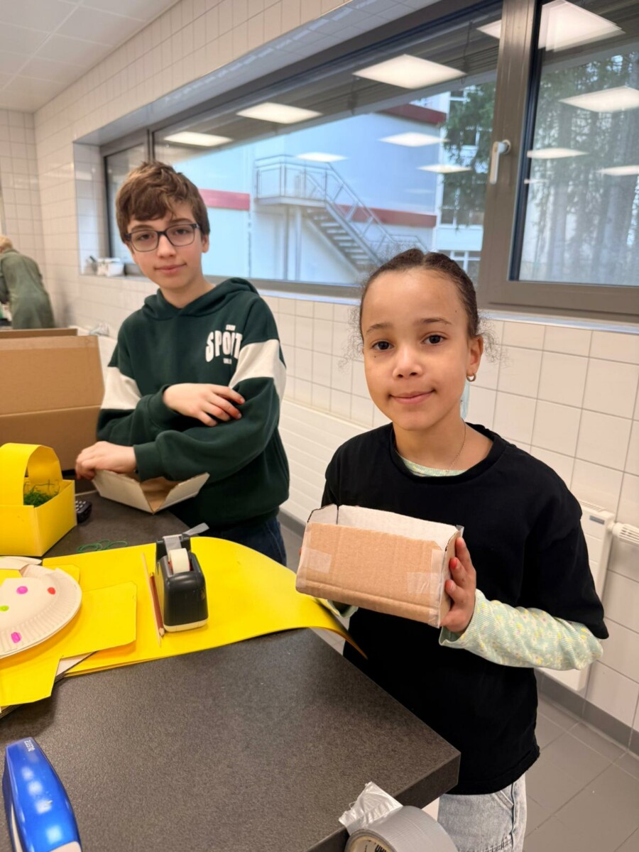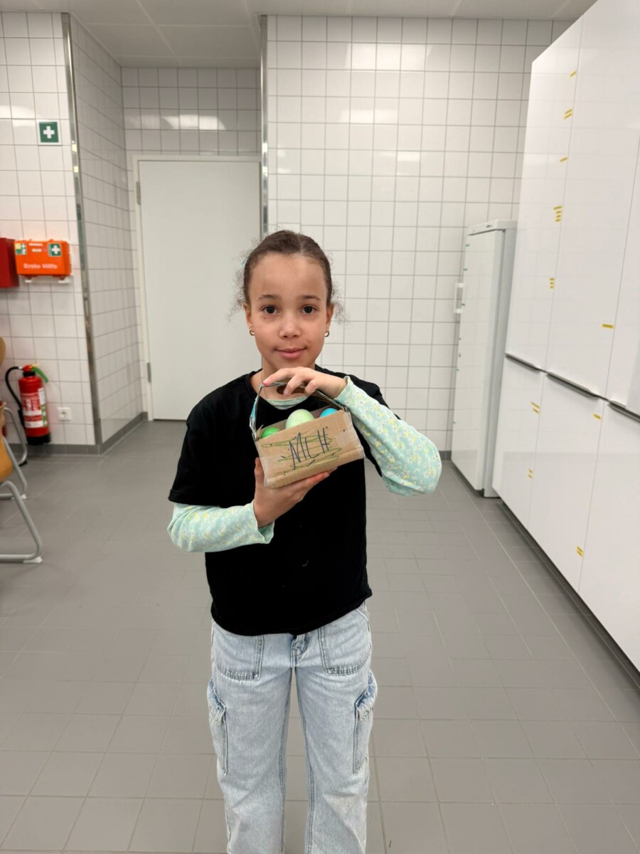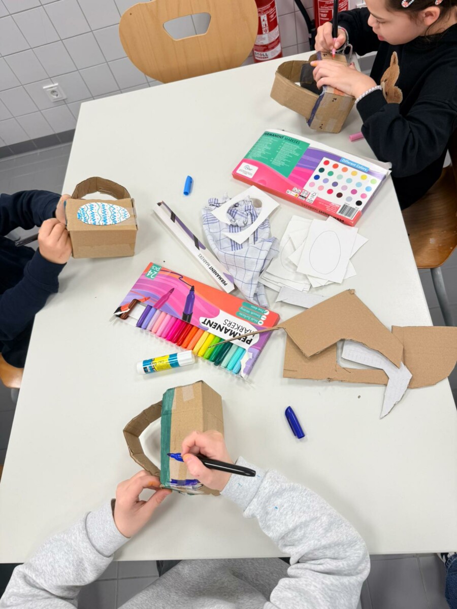 Dans un second temps, un atelier bricolage a permis aux enfants de fabriquer leur propre petit panier à œufs. À l’aide de différents matériaux, ils ont découpé, assemblé et décoré leur panier avec soin et enthousiasme.