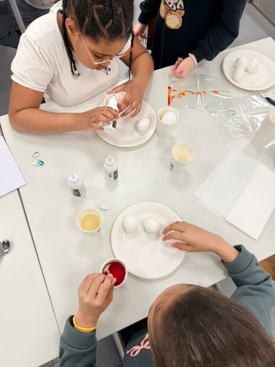 Un beau moment de préparation pour Pâques, rempli de couleurs, de sourires et de fierté.