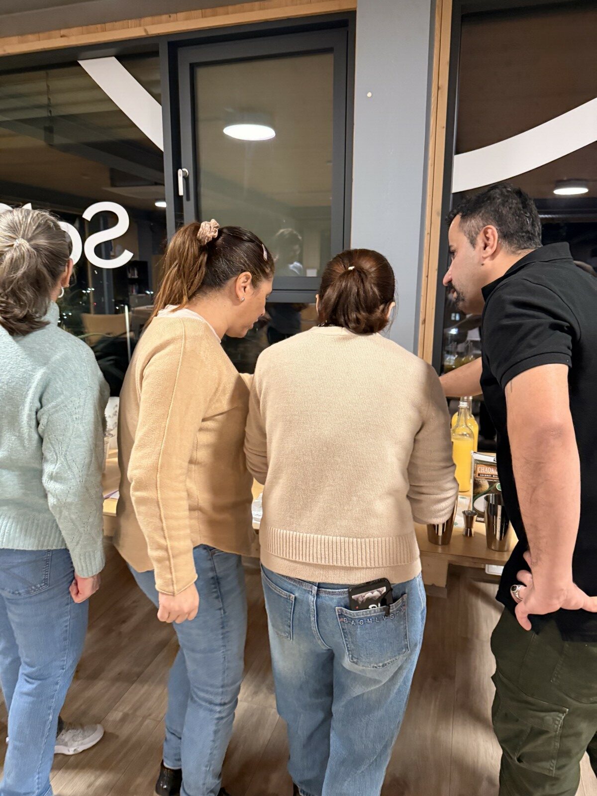 C’est un petit geste, mais c’est hyper valorisant de passer de l’autre côté du comptoir et de montrer ce qu’on sait faire. Entre deux rires avec le water-pong et les souvenirs capturés avec les photos instantanées, on a senti que la glace était brisée. Mais le moment le plus fort a sans doute été la fin de soirée, quand on s’est tous posés ensemble pour discuter.