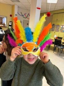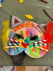 L’ambiance était chaleureuse et conviviale: entraide, échanges d’idées, rires et créativité étaient au rendez-vous. Chaque enfant a pu personnaliser son masque selon ses envies, en utilisant une multitude de matériaux, de couleurs et de décorations.
