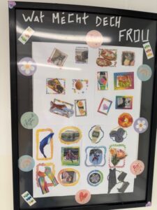 Les enfants ont répondu, à la question « Qu’est-ce qui te rend heureux ? ». À travers du découpage dans des revues, ils ont choisi des images d’objets, d’animaux ou de situations et autre qui représentent leur bonheur.