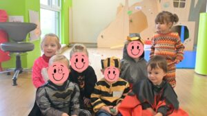 En cuisine, nous avons réalisé de drôles de “sorcelleries” : potions magiques, gâteaux monstrueux et autres douceurs pour régaler tout le monde ! Chacun a pu choisir son costume préféré : citrouille rigolote, fantôme farceur, petit vampire ou sorcière malicieuse….. Nous étions tous prêts à faire (un peu) peur !