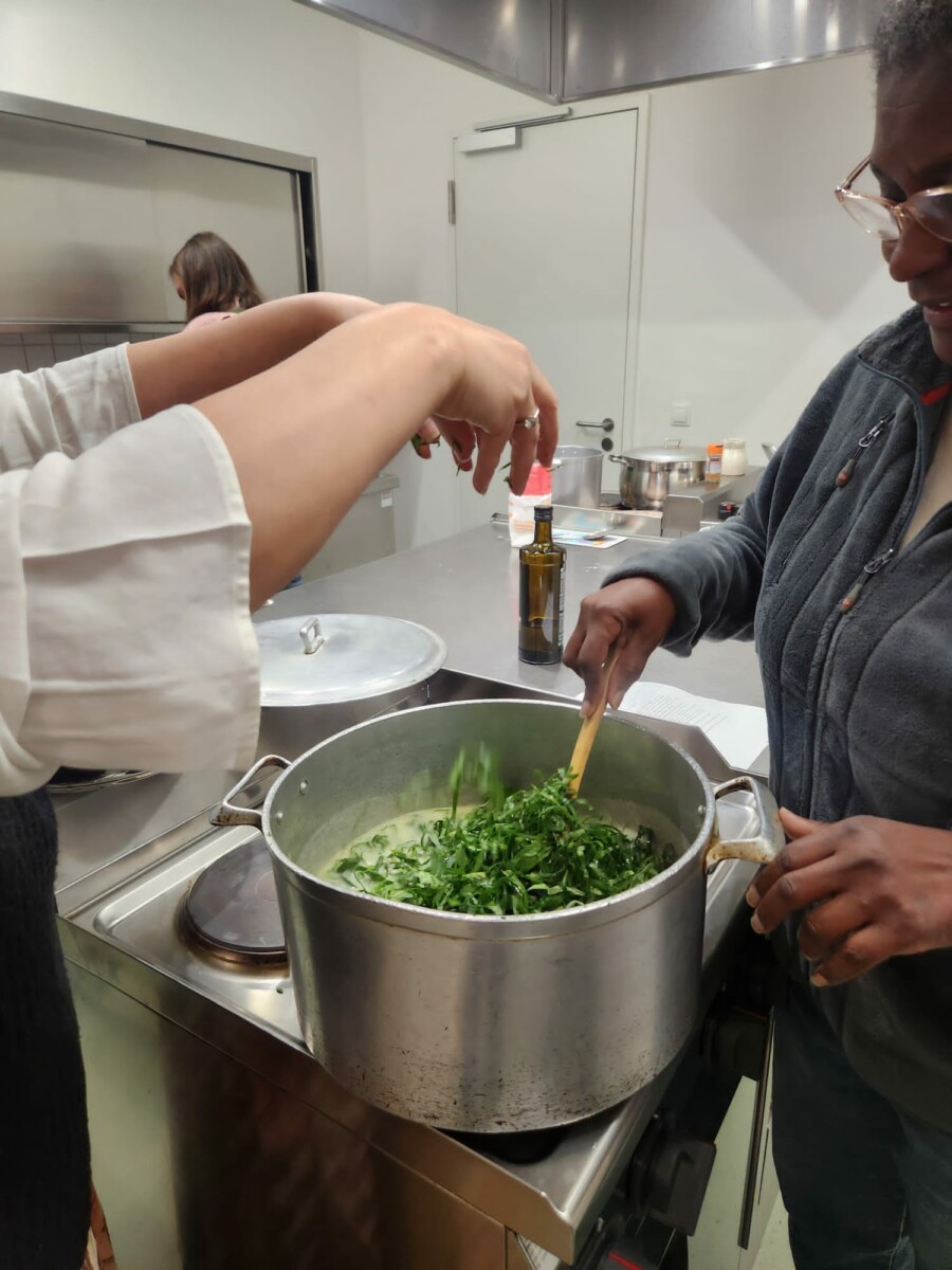 La recette du jour est née grâce à une conversation lors d’un précédent atelier de cuisine. Un participant racontait comment le chou poussait dans son jardin. Aussitôt, un autre a réagi avec une idée pleine de saveurs : une soupe Caldo Verde.
