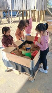 Aujourd’hui, notre bac à sable mobile 2.0 est prêt à être utilisé au quotidien – et il rencontre déjà un grand succès ! Les enfants y passent de longs moments à jouer, construire et explorer. Sa flexibilité est particulièrement appréciée : il peut être utilisé non seulement avec du sable, mais aussi avec d’autres matériaux, selon les envies et les idées de jeu.