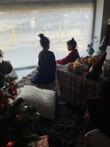 Zu sehen war eine liebevolle Familienszene, gespielt von zwei Kindern und zwei Erziehern, die gemeinsam die Weihnachtszeit genießen.