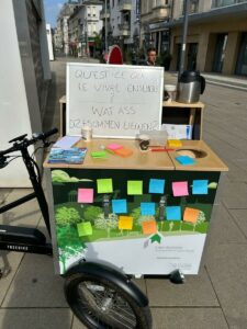 Dans le cadre d’une démarche de participation citoyenne menée au quartier Brill, le service est allé à la rencontre des habitants et des acteurs locaux pendant plusieurs mois. Lors des tournées du BikEnsemble dans le quartier, les participants ont été invités à partager leur vision et leur définition du vivre-ensemble au Brill.