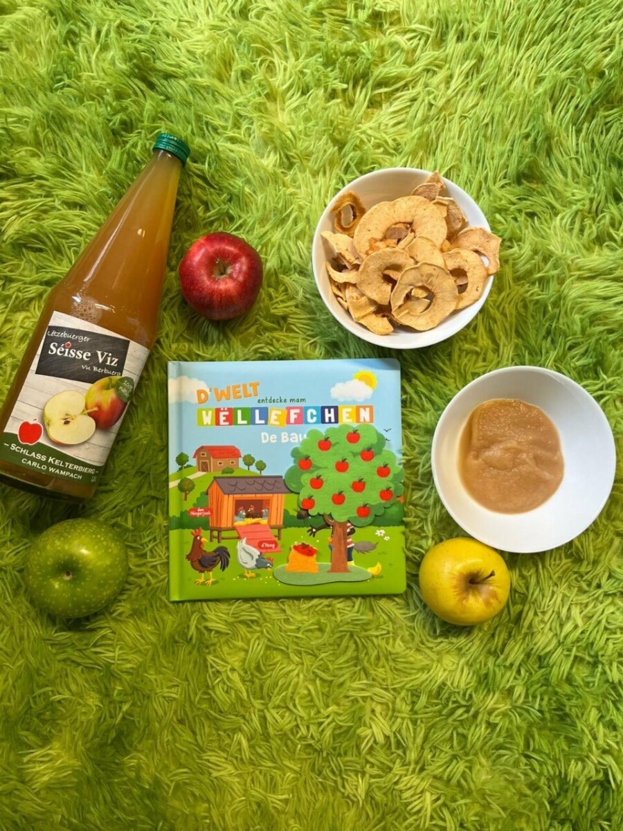Les enfants ont observé que les pommes peuvent avoir des couleurs différentes – vertes, jaunes, rouges – mais aussi des goûts variés. Ils ont goûté du jus de pomme, des pommes séchées et de la compote, découvrant ainsi toutes les formes sous lesquelles ce fruit peut être savouré.