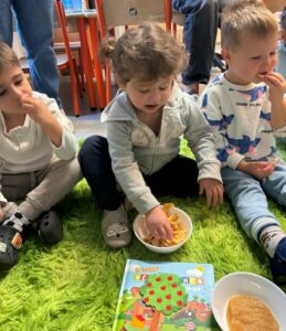 Cette activité a permis aux enfants de découvrir la pomme – un fruit du quotidien – de multiples façons. Présente tout au long de l’année, la pomme les accompagne déjà dans leur vie de tous les jours : lors de nos promenades, dans les vergers du fermier ou encore comme collation à la crèche.