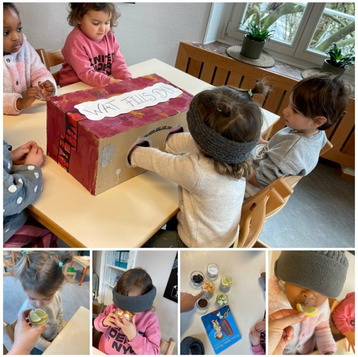 Dans le cadre du projet « mon corps, mes sens », les éducateurs du Groupe Wellefcher ont proposé aux enfants différentes activités de perception sensorielle, centrées sur les sens du toucher, de l’odorat et du goût. Installés ensemble autour de la table, les enfants ont participé tour à tour à ces expériences ludiques et enrichissantes.