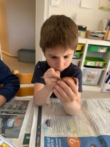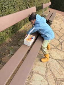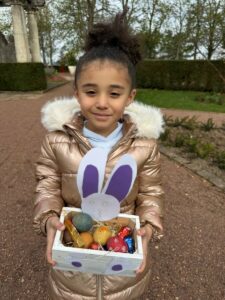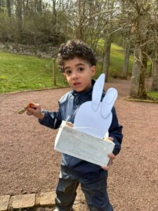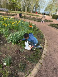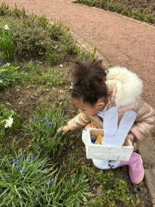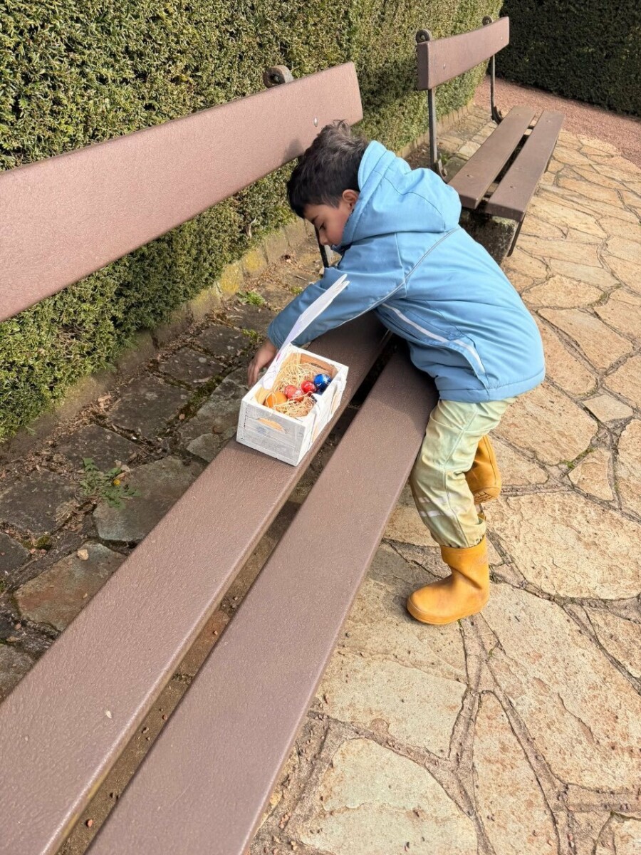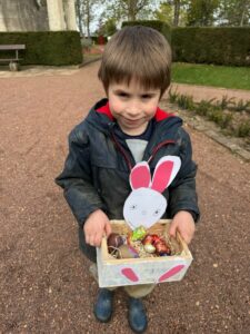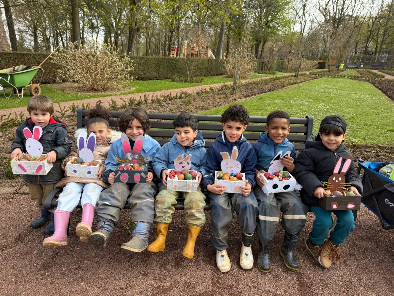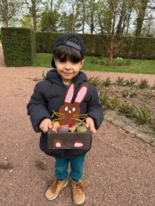 Une fois la surprise prête, les enfants ont pris leur panier et se sont lancés dans la chasse avec beaucoup d’excitation. Très investis dans leur recherche, ils étaient particulièrement fiers de remplir les paniers qu’ils avaient eux-mêmes confectionnés lors des activités précédentes.