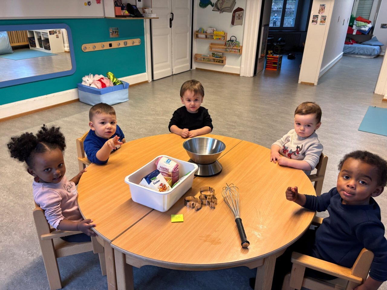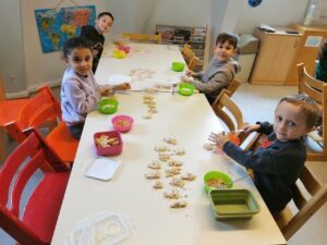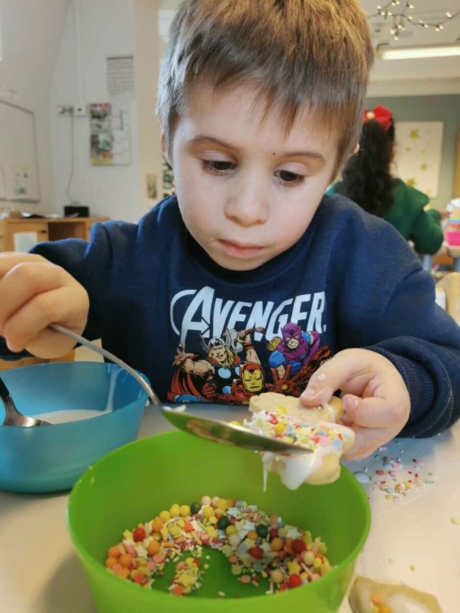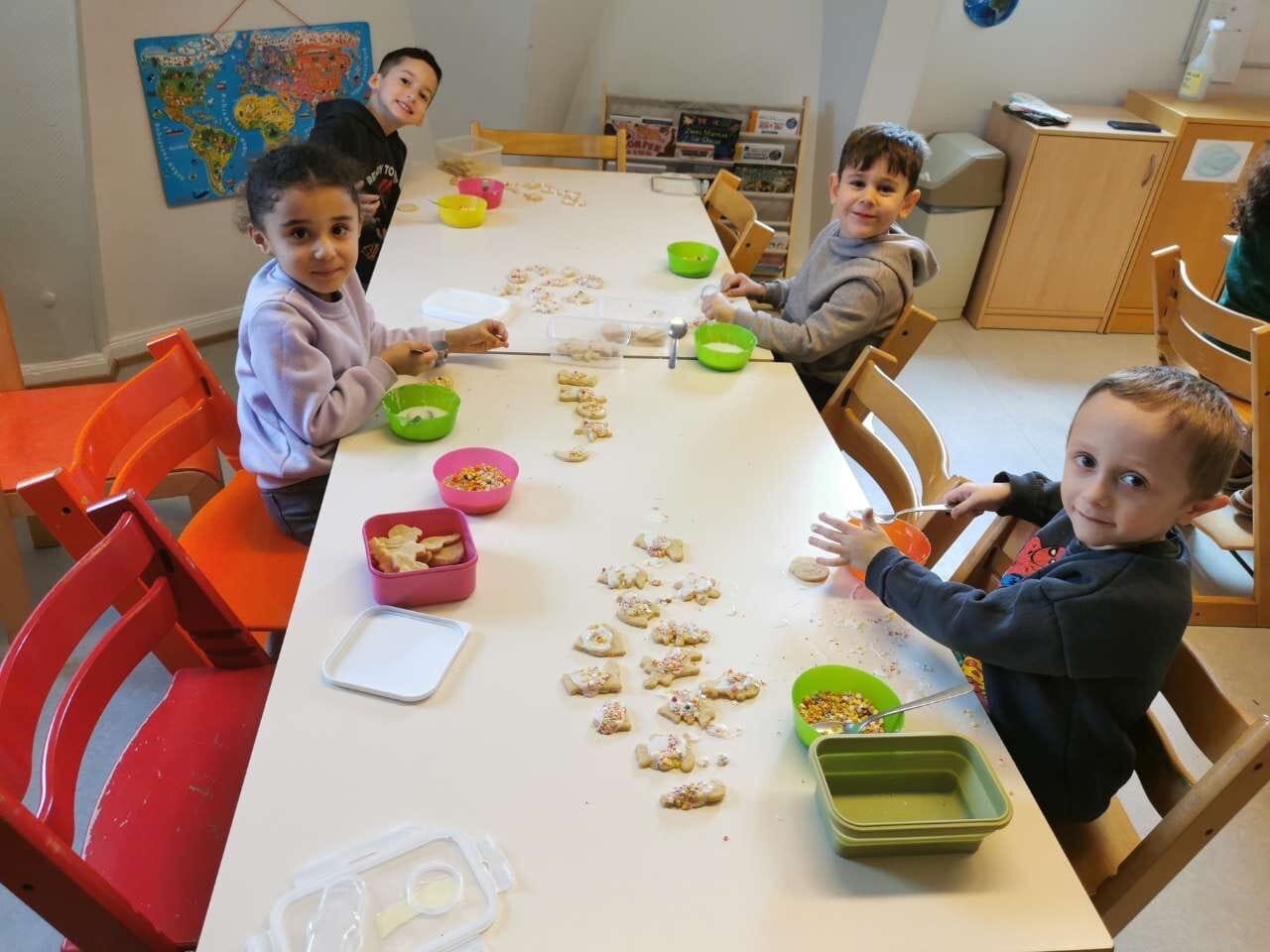 À l’approche des vacances de Noël, aussi bien les enfants du groupe des bébés que ceux du groupe scolaire ont participé à une activité conviviale et très appréciée : la préparation de biscuits de Noël.