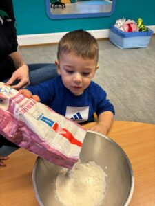 Dans les deux groupes, les enfants ont été invités à découvrir les ingrédients nécessaires à la réalisation de la pâte.