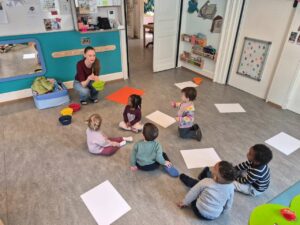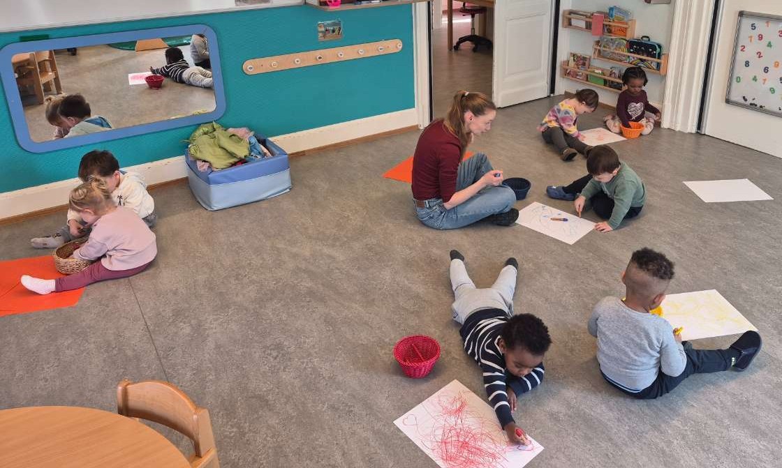 Nous privilégions ainsi une approche qui relie mouvement, concentration et créativité, plutôt qu’un cadre plus classique à table. Cette manière de faire apporte aux enfants davantage de détente et favorise un environnement d’apprentissage plus serein et épanouissant.