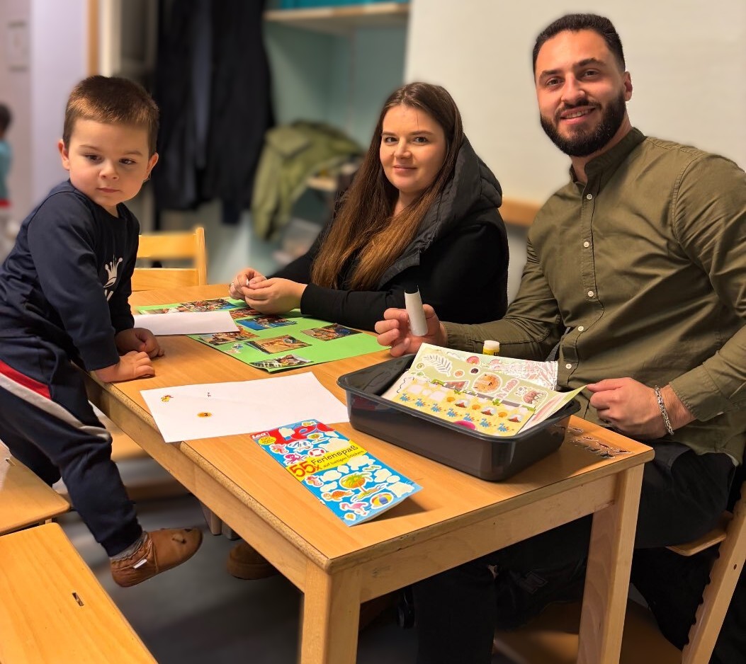 Les collages réalisés décorent ensuite notre salle de groupe et créent une atmosphère familière et chaleureuse dans laquelle tous les enfants et toutes les familles peuvent se retrouver. C’est une bonne occasion pour les éducateurs de discuter de manière informelle avec les parents et d’avoir un aperçu de la vie familiale.