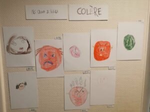 Chaque mois, une émotion est abordée dans les différents groupes. Le projet a commencé en janvier avec l’émotion de la colère. D’autres émotions seront travaillées progressivement, jusqu’à arriver à la joie.