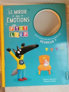 Pour introduire le thème, nous avons utilisé un livre du Petit Loup, qui présente simplement plusieurs émotions. Nous avons choisi de travailler plus particulièrement quatre émotions : la colère, la tristesse, la peur et la joie.