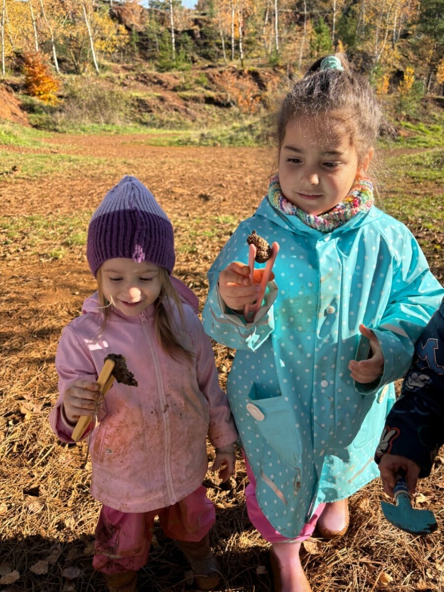 Lors de notre activité « Kleine Forscher unterwegs » – Les petits chercheurs en exploration – les enfants sont partis à la découverte de la forêt, équipés de loupes, pinces et autres outils de recherche. Cette expérience leur a permis d’explorer leur environnement naturel de manière à la fois ludique et éducative.