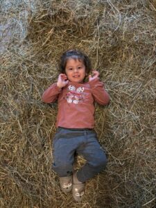 Bien sûr, avant de commencer, nous avons échangé avec les parents afin de nous assurer qu’aucun enfant ne présente de réaction allergique au foin.