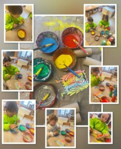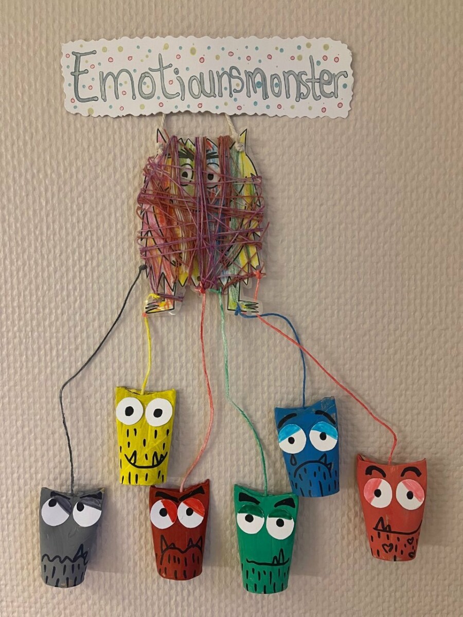 Par le choix des couleurs, des formes et des coups de pinceau, chaque enfant a pu exprimer sa perception des émotions. Une fois les monstres assemblés en mobile, nous avons échangé ensemble sur les émotions, leur signification et la manière dont elles se manifestent dans la vie quotidienne. Cet atelier a permis d’allier créativité et réflexion, tout en encourageant l’expression verbale et artistique des sentiments.