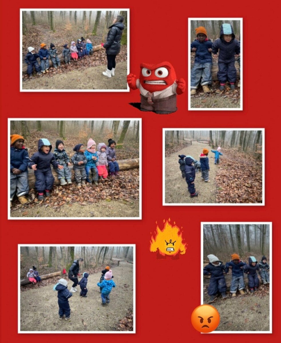 Pour approfondir plus spécifiquement la thématique de la colère, nous avons organisé une sortie en forêt intitulée « La colère dans le ventre – découvrir et relâcher ses émotions ». Installés sur un tronc d’arbre, les enfants ont fait connaissance avec le « monstre de la colère », qui les a accompagnés tout au long de cette activité.
