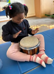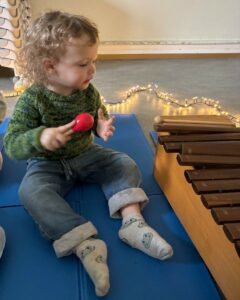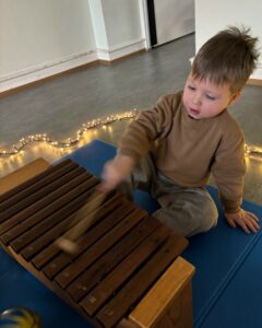 Ils ont été invités à expérimenter les sons, à écouter attentivement et à produire ensemble une ambiance sonore. Cette expérience partagée a favorisé les premières formes d’expression émotionnelle, le développement de l’empathie et la création d’un climat sécurisant et bienveillant.