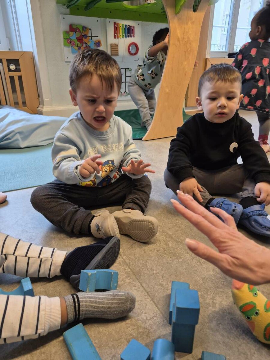 Lorsque la tour tombait, nous mettions des mots sur les sentiments exprimés : « Tu es triste parce que ta tour est tombée. » Cela aidait les enfants à comprendre ce qu’ils ressentaient.