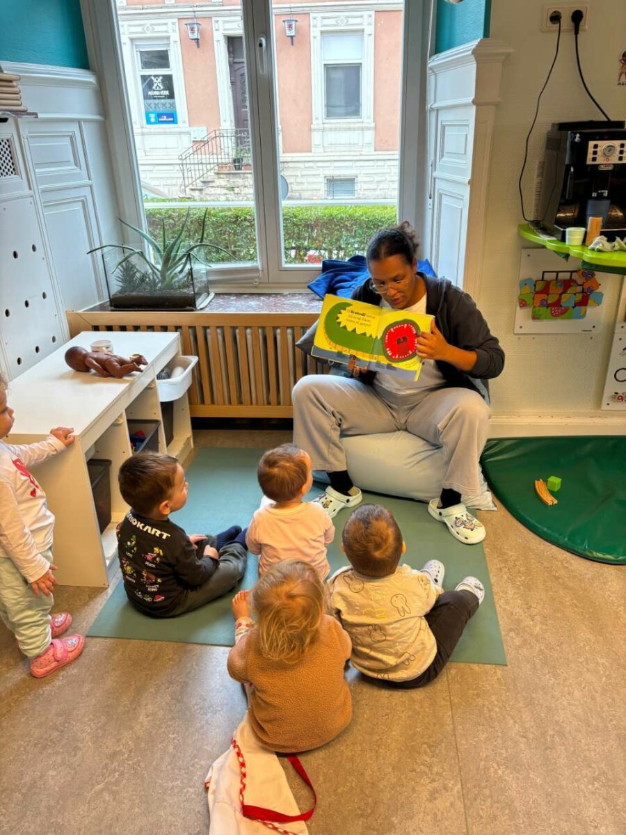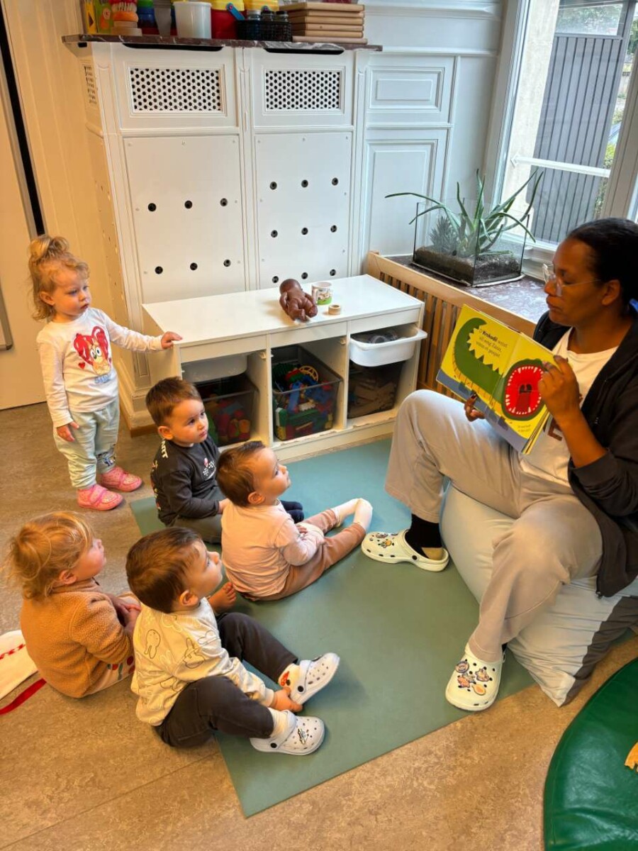 Nous lisons alors une histoire dans le calme, pour permettre aux enfants de se détendre et de se recentrer avant de s’allonger. Ce moment tranquille les aide à trouver le repos intérieur et à s’endormir plus facilement.