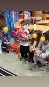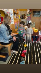 Lors de cette première rencontre, les enfants ont eu l’opportunité de participer au cercle du matin avec les élèves de la préscolaire. Ils ont pu observer le déroulement de ce moment clé de la journée tout en y prenant part activement. L’implication a été d’autant plus naturelle que les enfants de l’école abordent actuellement, comme nous, le thème des émotions. Ce lien a facilité les échanges et permis aux enfants de s’intégrer en douceur dans ce nouveau cadre.