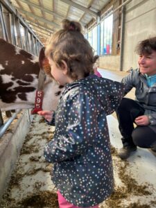 Un moment particulièrement marquant fut la promenade en tracteur jusqu’à l’étable. Installés en toute sécurité sur la banquette arrière, les enfants ont ressenti les secousses et la puissance de la grande machine. Grâce à cette expérience, ils ont développé une plus grande appréciation pour les animaux et l’agriculture, car cette sortie allie apprentissage et pratique, tout en renforçant leurs compétences sociales et émotionnelles.