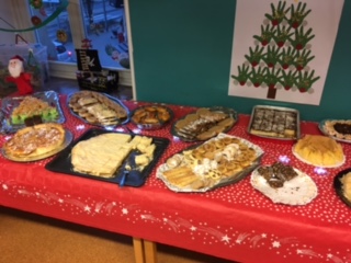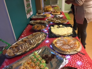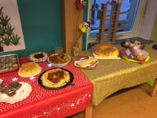 Cette année pour notre fête de noël avec les familles , on a essayé une autre forme. Au lieu de faire des gâteaux avec les enfants, on a demandé aux parents de nous préparer des plats ou desserts typiques de leurs pays, afin de pouvoir organiser un buffet. On a distribué une lettre avec les règles d’hygiènes à respecter et on a eu beaucoup de gens qui ont participé.