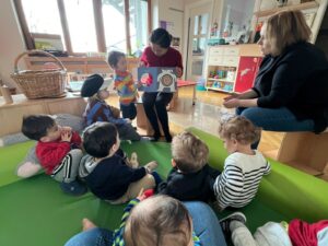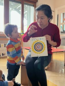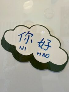 Ensemble, enfants, parents et éducateurs apprennent de façon non formelle à prononcer le « Bonjour » en chinois ainsi que d’articuler les noms des enfants des différents groupes en langue chinoise !