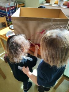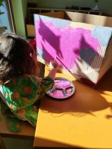 Da wir unsere Kinder aktiv und partizipativ an dem Projekt beteiligen wollen, haben die kleineren unter Ihnen sich an der kreativen Gestaltung der „Give Box“ beteiligt, so dass diese in ihrer Haptik für alle Beteiligten attraktiv und interessant wirkt!