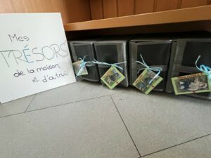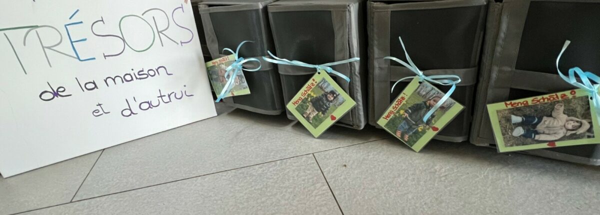 Wir haben die Eltern mit in diese Arbeit einbezogen, indem wir ihnen den Gebrauch der Kisten erklärt haben und diese darum gebeten haben „Meine Schätze“ in ihrer Muttersprache niederzuschreiben.