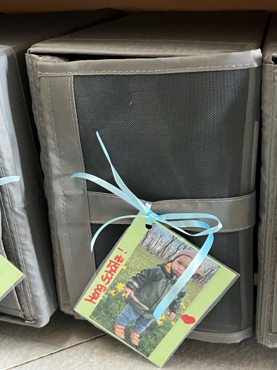 So kam uns die Idee auf Augenhöhe und in der Reichweite der Adressaten faltbare Kisten zur Verfügung zu stellen, die nur den Kindern gehören. Diese wurden anhand von einem Lichtbild individualisiert, so dass das Kind seine Kiste leicht wiederfinden kann.