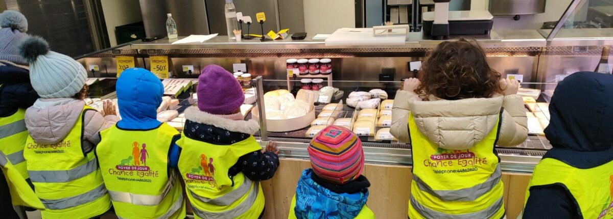 Les enfants de la maison « Chance Egalité » sont libres à choisir cette activité pédagogique où avec le bus nous arrivons au marché pour visualiser les différents délices des marchands. En traversant la place du marché, nous visualisons les différents fruits et légumes ainsi des fromages des Alpages et des spécialités grecques. Souvent, les enfants ont l’occasion à faire les dégustations des fruits de saison comme p.ex. la pomme ou la fraise ou d’autres délices du jardin.