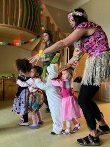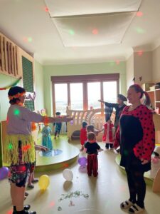 De divers jeux de danse traditionnels ont été organisés avec des ballons, des serpentins et des confettis !