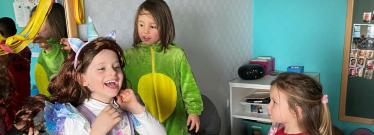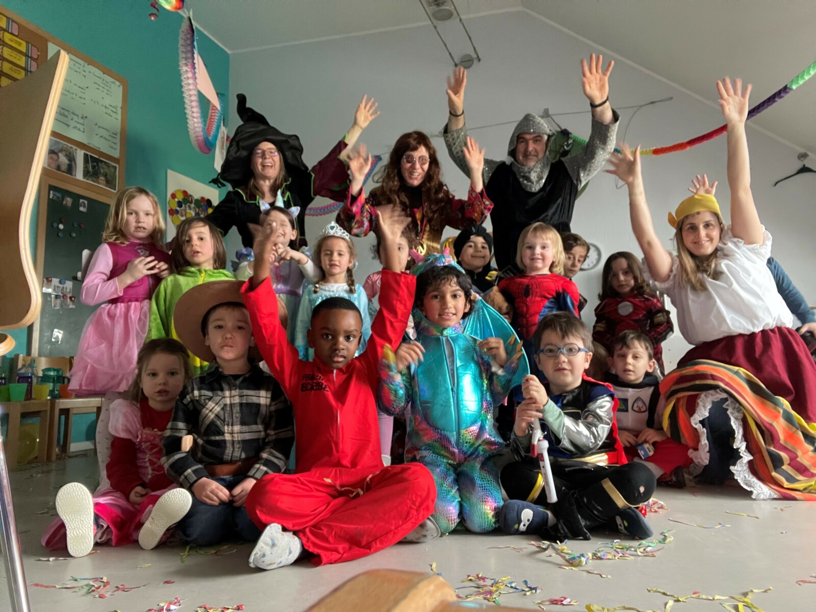 Entre costumes colorés, joie, confettis et gâteaux gourmands, la journée s’est transformé en une fête pleine de fantaisie et de divertissement. Les enfants étaient libres de décider s’ils souhaitaient participer à cette activité, déguisés ou non ! Au préalable, les enfants ont pu découvrir le thème du carnaval de manière non formelle à travers des livres, des récits et des images.