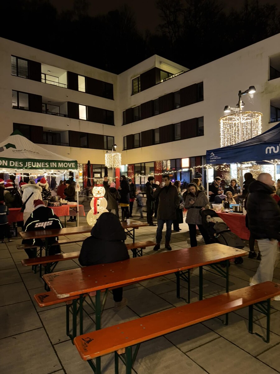 Le marché de Noël se déroule sur une place centrale et attire pas mal de personnes, que ce soit des parents, mais aussi voisins et gens du quartier.