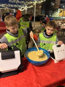 Etant donné que cette année, nous mettons en évidence l’importance de la participation des enfants à la vie de la maison relais, nous avons laissé les enfants prendre les rennes de la vente des bricolages et des gaufres. Et nous devons dire que le petit groupe de vendeurs a géré cela d’une main de maître.