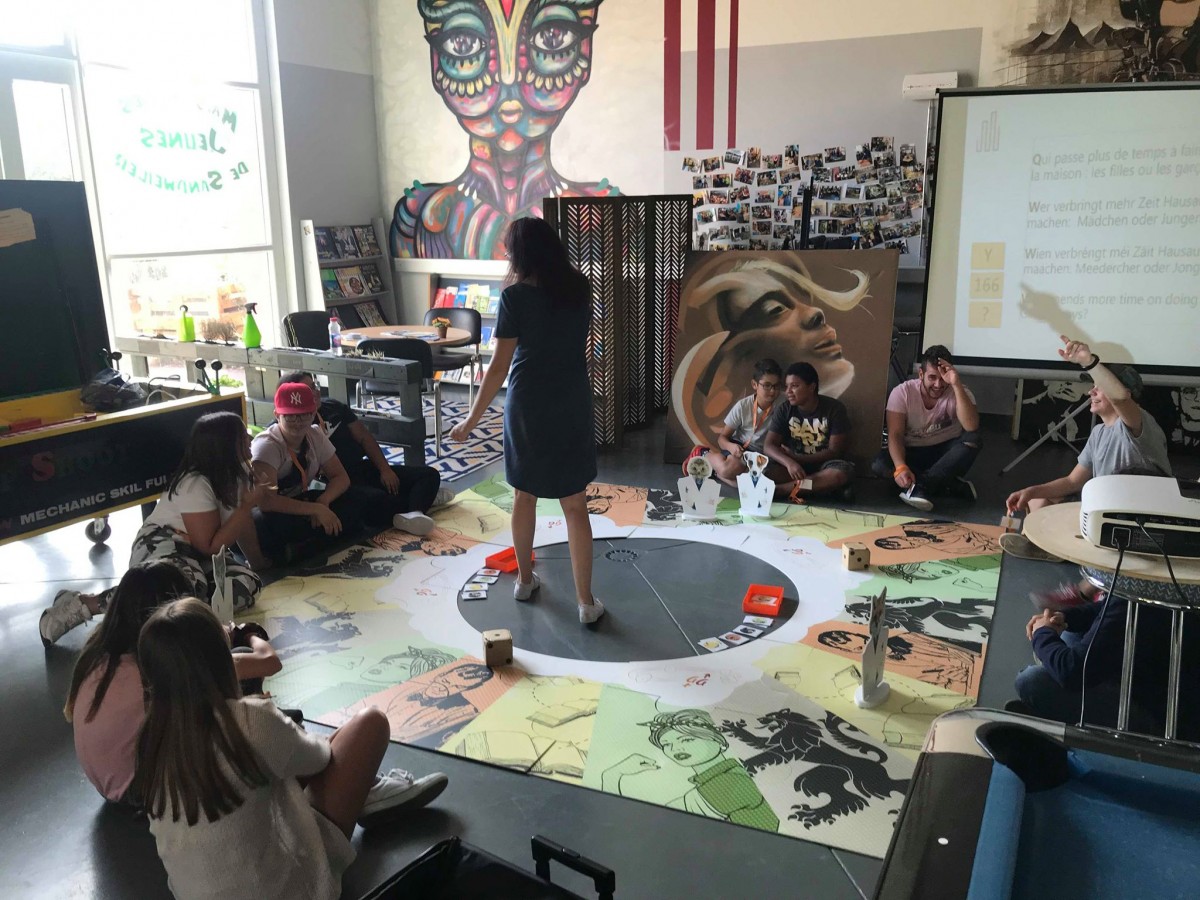 Jugendhaus Sandweiler huet Ufank September um Gender Game deel geholl. Als Gender bezeechent een net nëmmen dat biologescht Geschlecht, mee och déi gesellschaftlech Rollenzouschreiwungen zu den Geschlechter vun Mann an Fra. Gender Game ass en Gesellschaftsspill, wat erstallt ginn ass vun LISER (Luxembourg Institute of Socio-Economic Research) an Zesummenaarbecht mat der Uni Lëtzebuerg. D’Spill behandelt déi eenzel Kategorien vun Power, Politik/Bildung, Aarbecht an Sozialgemeinschaft. D’Jugendlecher hunn an Gruppen géinteneen gespillt. Pro Kategorie, wou si drop komm sinn, konnten si eng Kaart mat enger Nummer zéien an déi dozougehéierend Fro ass gestallt ginn. Eng richteg Äntwert gouf een Punkt.