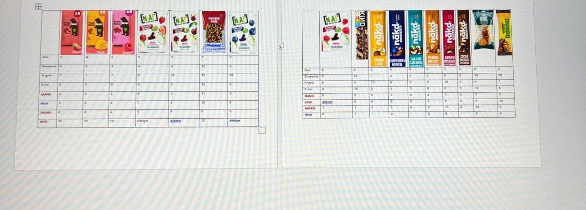 No all Snack gouf eng Note verginn an duerno zesumme reflektéiert. Sou konnten d’Jonker hir eege Goûten hannerfroen an d’Zesummenhäng tëscht Goût an Inhaltsstoffer besser verstoen.