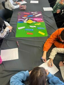 Lors de l’activité de cette semaine, les premiers croquis et idées des enfants ont été rassemblés. Toutes les idées ont été discutées dans le groupe et développées afin d’intégrer celles de chacun. Grâce à cette activité, une situation précise a pu être définie afin de pouvoir commencer, lors de notre prochaine rencontre, l’écriture des scènes et la préparation du matériel requis. Une courte activité sera également réalisée, dont le but sera de travailler la dynamique de groupe, afin qu’ils apprennent à mieux se connaître et à faire confiance aux autres.