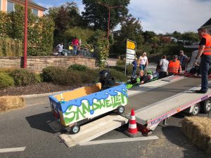 Dunn war den groussen Dag endlech do. Fréi Moies um Sonndeg hunn mir eis op den Wee gemaach fir op Biissen. Vun 09.00-11.00 konnten eis Jonker Stéck testen an een Gefill fir Rennen kréien. An 2 Duerchleef (Riicht an Slalom) an 3 verschidden Kategorien (Junior, Teenie an Senior) konnten si hiert Kënnen ënnert Beweis stellen. Hier ganz Beméiungen sinn schlussendlech belount ginn. An der Kategorie vun Teenie, huet Jugendhaus Sandweiler mat sengem Chauffeur Cédric déi 3. Platz beluecht, an konnt sech ënnert 13 Participanten duerchsetzen. 😊