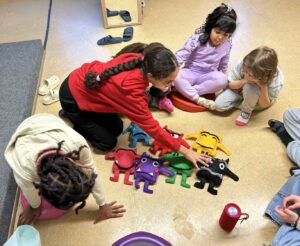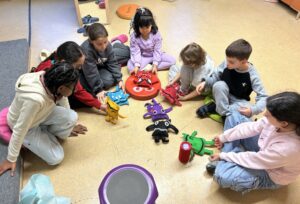 Pour faciliter l’expression et la compréhension des ressentis, elle a utilisé les « poupée des émotions » conçu lors d’une précédente activité. Avant le début de l’écoute, elle a pris le temps d’interroger les enfants sur les différentes émotions représentées par ces poupées, afin de s’assurer que chacun identifie clairement leur signification. Cette démarche a permis d’installer un cadre rassurant et propices aux échanges.