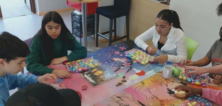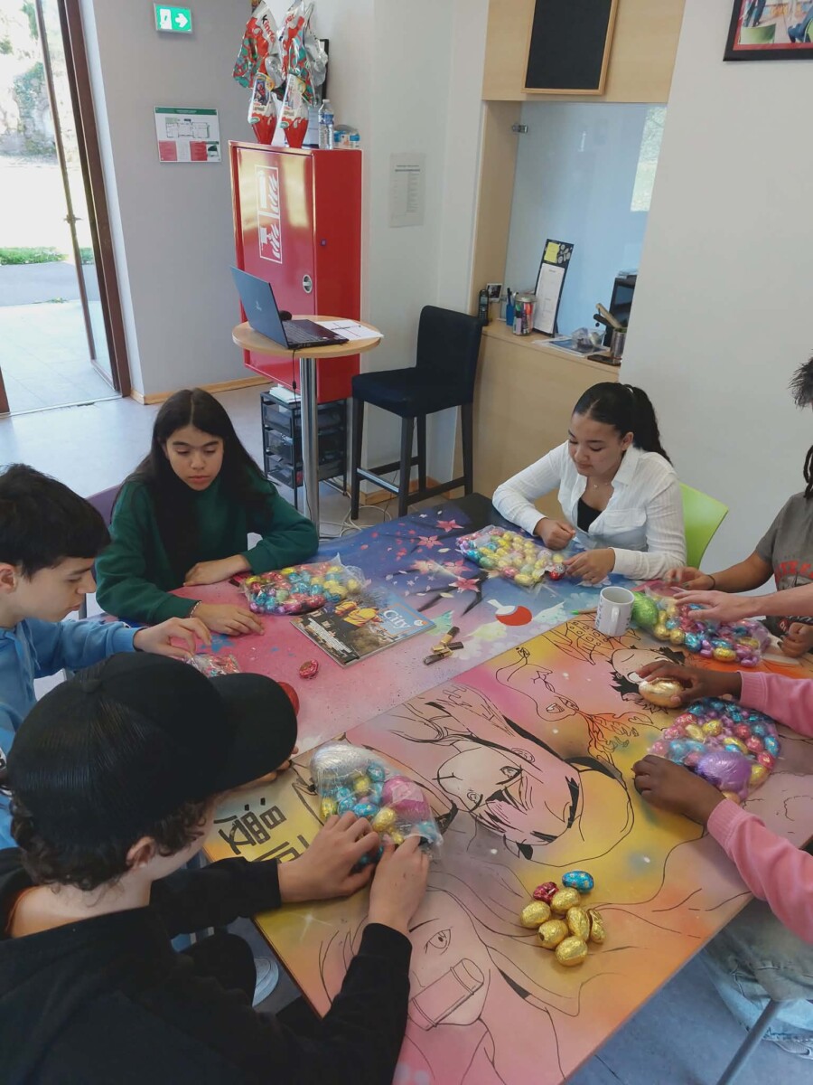 Dans une ambiance festive, une chasse aux œufs a été organisée pour le plus grand plaisir des jeunes, qui ont pu repartir avec des chocolats. Nous avons également participé à un tournoi d’échecs organisé par la Maison des Jeunes de Clausen, favorisant la rencontre et l’échange entre structures. Pour finir ces vacances en beauté, un cookie géant lors d’un atelier pâtisserie a été réalisé et nous nous sommes régalés !