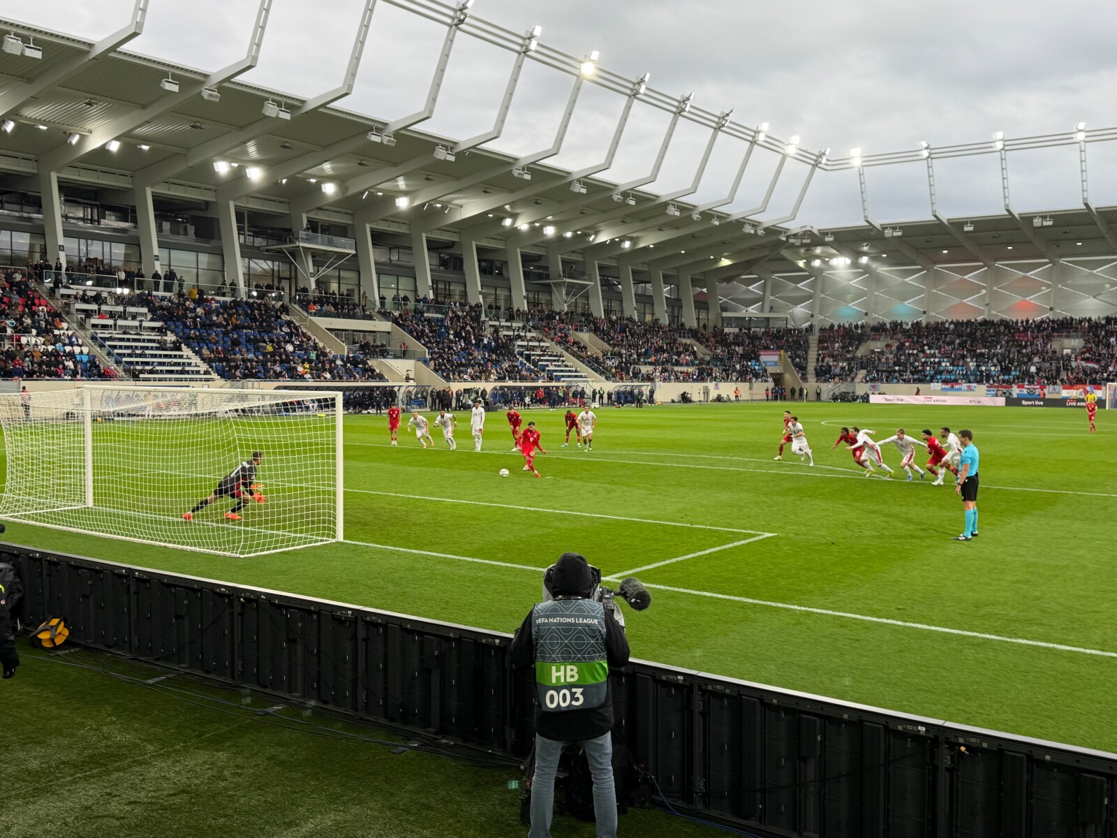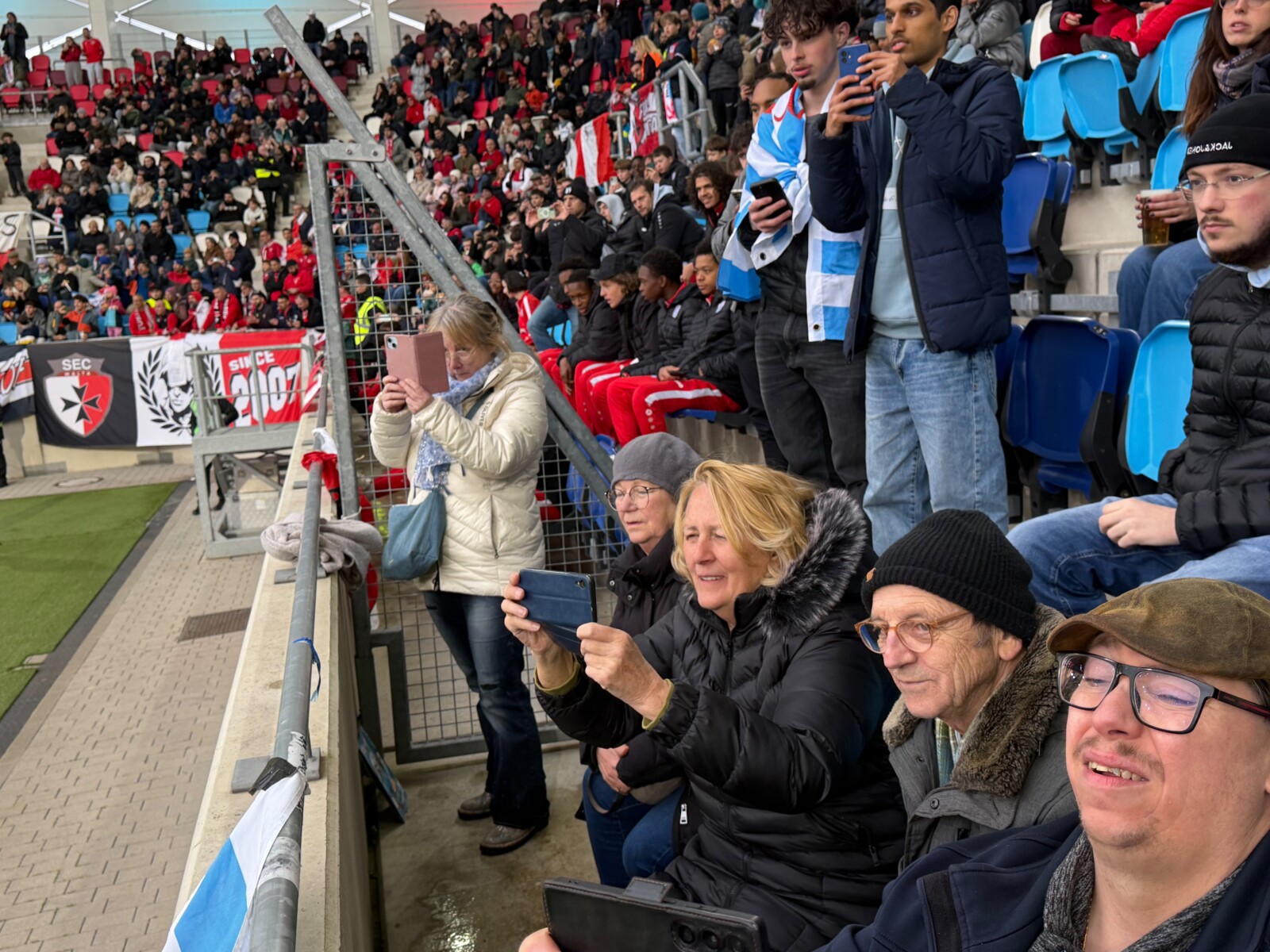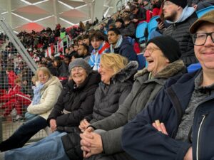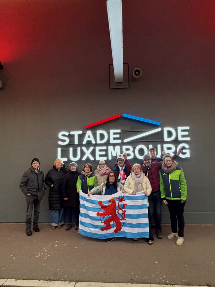 Arrivés au stade, nous avons d’abord pris quelques photos souvenirs avant de rejoindre nos places dans les tribunes. La superbe atmosphère, les supporters enthousiastes et le match passionnant ont assuré un excellent divertissement. Vivre la rencontre ensemble était particulièrement agréable – et les trois buts du Luxembourg ont bien sûr constitué le moment fort de la soirée.