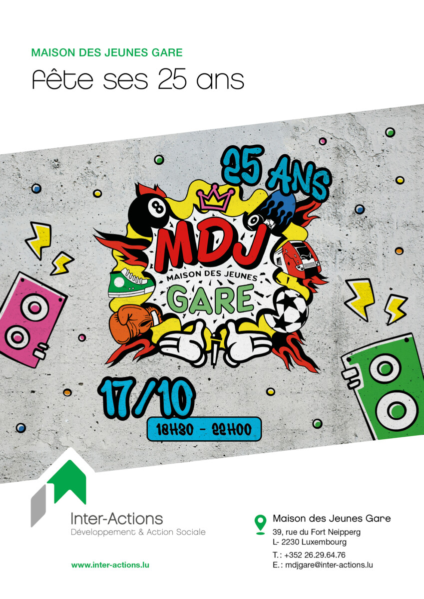 D’ MDJ Gare gouf 1989 gegrënnt a läit zënter 2000 an der Rue Fort Neipperg. De 17. Oktober hu mir hei säin 25. Anniversaire gefeiert.